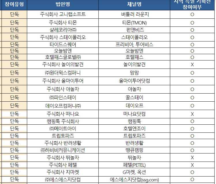 ▲ 지역특별기획전: 12개 광역시도 7만 원 이상 숙박상품 예약 시 5만 원 할인