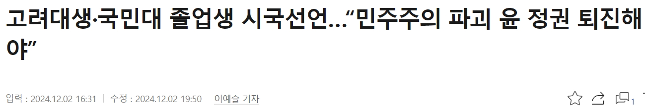 카테고리 없음 계속되는 시국선언, "국민이 주권자, 대통령 퇴진을 명령한다" by avo1 2024. 12. 2. 반응형 출처: 오마이뉴스 홈페이지 출처:인천투데이 출처: 경향신문 출처: 오마이뉴스 반응형 공유하기 게시글 관리 아보카도7