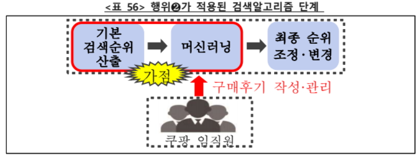쿠팡은 ’19.2월부터 현재(’23. 7월 기준)까지 3가지 알고리즘*을 이용하여 중개상품을 배제하고 최소 64,250개의 자기 상품(직매입상품 58,658개, PB상품 5,592개)을 검색순위 상위에 고정 노출함