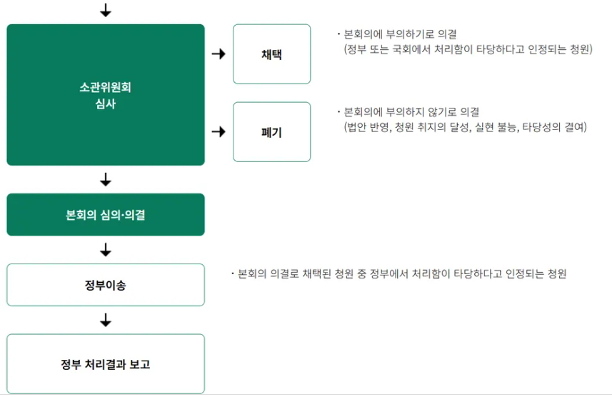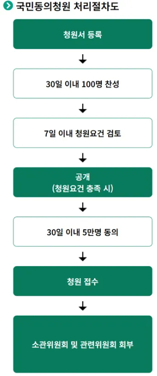 국민동의청원은 국민동의청원 홈페이지를 통하여 30일 동안 5만 명의 국민의 동의를 받아 제출할 수 있습니다. 의원소개청원은 국회의원의 소개를 받아 제출양식을 작성하여 국회사무처 국회민원지원센터에 직접 방문 제출하거나 소개의원실을 경유하여 제출하시면 됩니다.