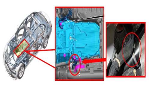 | E 220d 4MATIC | 변속기 배선 * 변속기 배선 경로 부적정으로 동력전달장치와 간섭될 수 있고, 변속기 배선이 손상되어 사고가 발생할 가능성 |