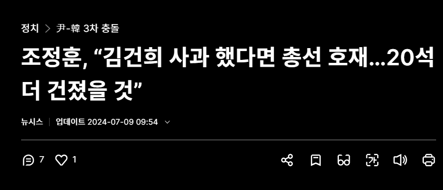 조국 의원: "윤대통령은 한동훈이 다음 공천권을 행사하는 것을 두고 보지 않을 것이다."(8일 뉴스하이킥 인터뷰 중 발언)