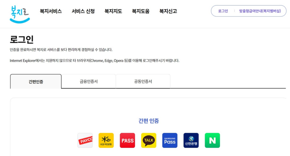 ③ 간편인증, 금융인증서, 공동인증서 중 편한 방법으로 본인 인증을 하고 로그인합니다.