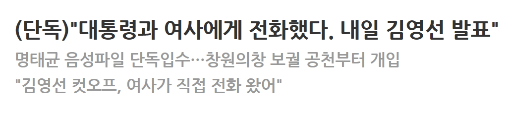 (단독)"대통령과 여사에게 전화했다. 내일 김영선 발표"