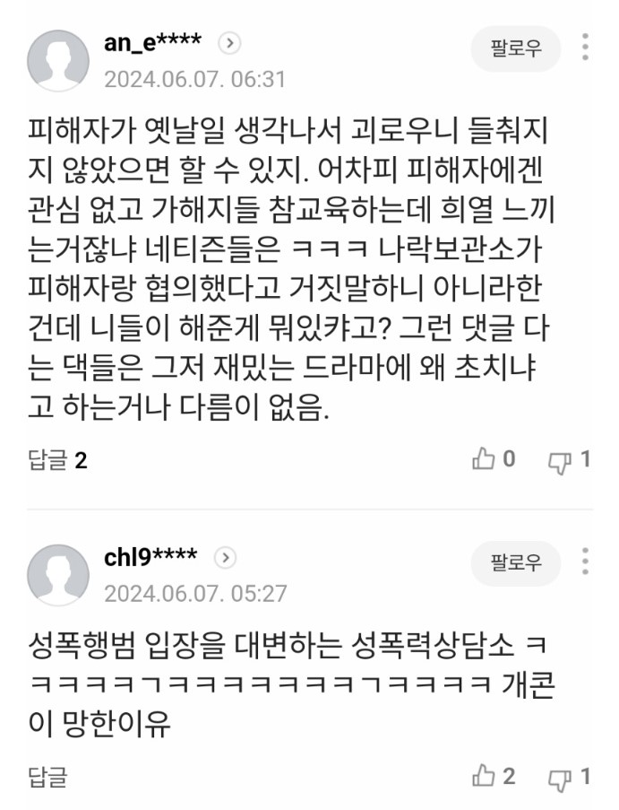 쏟아지는 관련 기사 일부에 달린 댓글