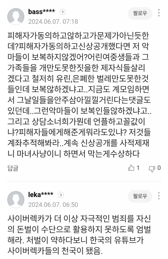 한 유튜버가 20년 전 밀양 성폭행 사건 가해자 처벌이 약했다며 이들 신상을 공개해 응징하겠다고 차례로 신상 밝히는 중. 해당자들은 직장 등에서 쫓겨나는 등 사태가 커져감. 자신은 관련도 없는데 유튜브에 이름 등장해 피해 보고 있다는 사람도 나타남. 피해자 가족은 이런 정보 공개에 동의하지 않았다고 함.