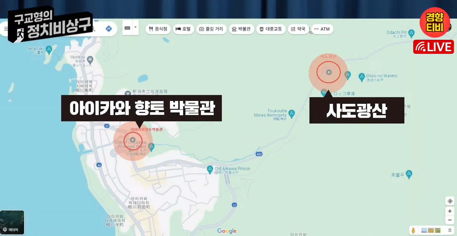 김성완 "이게 군함도도 역시 논란이 됐었잖아요. 그것 때문에 사도광산 유네스코 세계문화유산 등재에 반대했던 거거든요. 군함도 같은 경우에도 군함도에 전시하지 않고 군함도에서 1,000킬로 떨어진 도쿄 신주쿠에 있는 산업유산정보센터에다 전시를 하는 거였어요. 근데 그때는 구체적인 합의를 했던 게 아니라 어쨌든 당시에 조선인들의 강제동원 사실을 후대에서 다른 사람들이 알아볼 수 있게, 이해할 수 있도록 전시한다 요 정도로 합의했던 거에요. 일본이 설마 그렇게 할 거라고는 생각하지 않았거든요. 그런데 일본은 군함도에 하지 않고 1,000킬로 떨어진 도쿄 신주쿠에다가 전시를 했는데 그것도 나중에 가서 보니까 역사왜곡을 해서 제대로 전시를 안 했던 거에요. 그러니까 이번에도 우리가 만약에 합의한다고 하면 너네 군함도처럼 또 할 거지 안돼 그렇게 하면 안돼. 이번에는 아예 사도광산에다 전시를 해 이렇게 했었어야지."