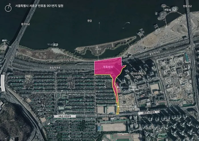 서울 서초구 신반포로~반포한강공원 구간 올림픽대로 위쪽을 덮어 한강까지 바로 걸어갈 수 있는 1만㎡ 공중정원 조성.