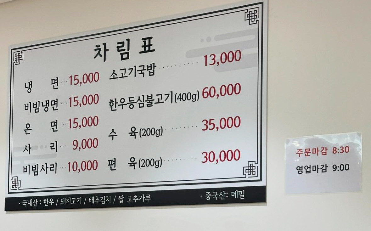 카테고리 없음 서울 평양냉면 맛집 가격표 (2024년) by gambaru 2024. 5. 8. 반응형 이런 기사가 났길래 유명 냉면집 가격표를 찾아봤더니 ㅎㄷㄷ 우래옥 평양면옥 을지면옥 을밀대 필동면옥 평래옥 봉피양 동무밥상 서북면옥 정인면옥 반응형 공유하기 게시글 관리 아보카도7