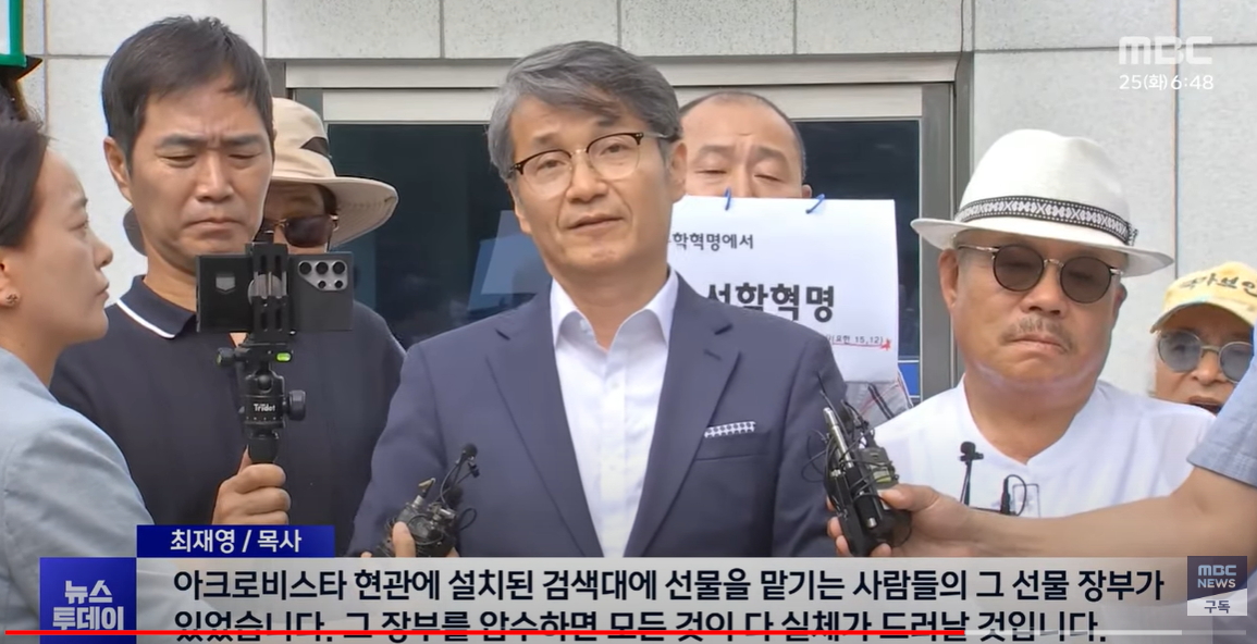 mbc 뉴스투데이는 6월 25일 김건희 여사에게 명품 가방을 건낸 최재영 목사가 국민의 힘 이철규 의원 명예훼손 혐의로 경찰 조사를 받았다고 보도했다. 최 목사는 여러 혐의로 검찰과 경찰의 네 번째 소환 조사를 받았다고 밝혔다. 조사를 받고 나온 최목사는 언론 인터뷰에서 '본질을 흐리는 정치적 고소' 라고비판하며, "아크로비스타 현관에 설치된 검색대에 선물 맡기는 사람들의 그 선물장부가 있었습니다 그 장부를 압수하면 모든 것이 다 실체가 드러날 것입니다"라고 강한 어조로 반박했다.