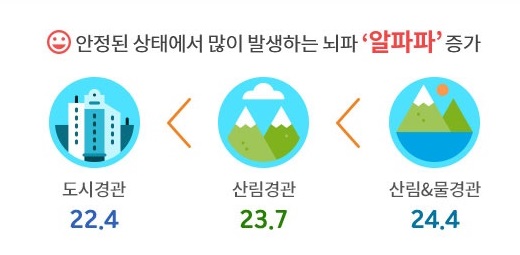 숲은 사람의 몸에 어떤 이로운 영향을 미칠까요. 이를 잘 보여주는 그래픽이 2개 있습니다. 전국의 유명 숲을 심신을 안정시키고 병을 낫도록 도와주는 공간으로 만드는 ‘치유의 숲’ 사업을 벌이고 있는 산림청에서 만든 자료입니다.