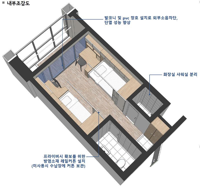 사업규모 : 수용인원 595명 2인 1실(연면적 1만 2,082.65㎡, 지하 3층, 지상 15층)