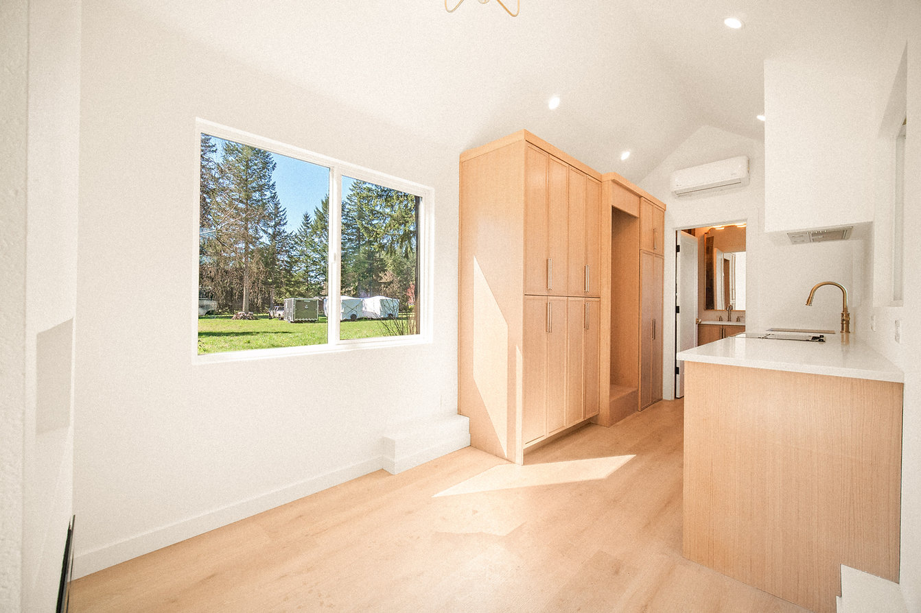 미국의 모바일 홈 제조·판매 회사 롤링 홈스(rolling homes)에서 팔고 있는 이동 가능한 농막입니다. 가로 9m, 세로 2.6m, 높이 4m 남짓에 바닥 면적은 7평이 안 되지만 침실, 부엌 겸 거실, 화장실 겸 욕실이 잘 분리되어 있는 실용적인 구성입니다. 다락을 따로 만들지 않았지만 2명이 생활하는데 불편함이 없어 보입니다. 더 많은 사진은 롤링 홈스 홈페이지(www.wheelsonthehouse.com/product-page/copy-of-the-dweller-model)에서 확인할 수 있습니다.