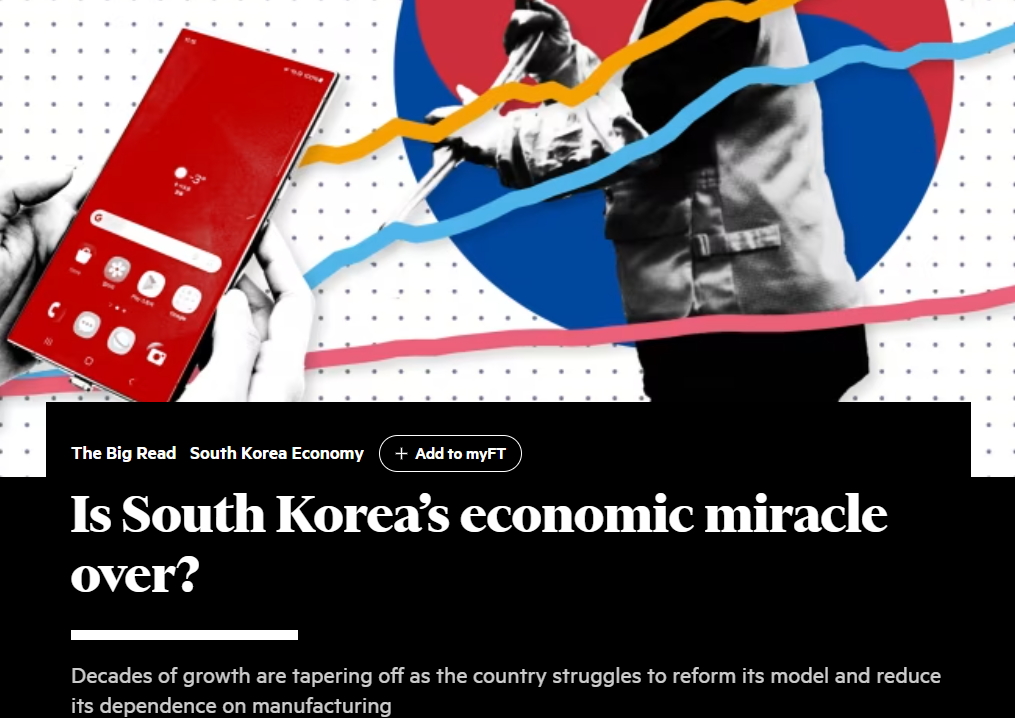 영국의 유력지 파이낸셜 타임즈는 4월 22일 “한국의 경제 기적은 끝났는가?(Is South Korea’s economic miracle over?)”라는 제하의 기사를 게재했다. 이 기사는 한국이 값싼 에너지와 노동력에 의존한 낡은 성장 모델이 한계에 봉착했다고 지적했다. 수백 조를 투입하는 용인 반도체 메가 클러스터가 한국이 훨씬 가난하고 민주화가 덜 된 시기에 처음 개발된 경제 모델을 유지하기 위한 대표적인 사례라고 봤다.