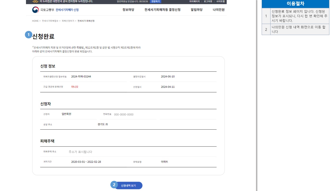이후 진행 상황은 문자메시지로 받을 수 있고, 시스템에 들어가 언제든지 조회 가능하다고 합니다. 전세사기 피해자로 최종 결정되어 통지서와 결정문이 나오면 이를 직접 출력도 할 수도 있습니다. 이용 방법은 시스템 홈페이지에서 '사용자 매뉴얼'에 들어가면 더 상세히 알 수 있고 콜센터 1600-9640에서 상담사의 도움을 받을 수도 있습니다.