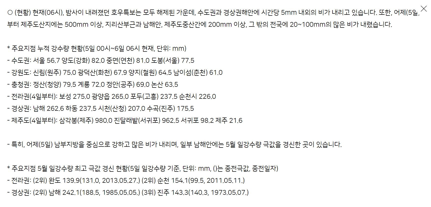 카테고리 없음 제주 하루 980mm 물폭탄 실화냐 by gambaru 2024. 5. 6. 반응형 기상청 기상정보 ㄷㄷㄷ 폭우 뉴스에 달린 댓글 "비 온다 했니 안 했니?" 반응형 공유하기 게시글 관리 아보카도7