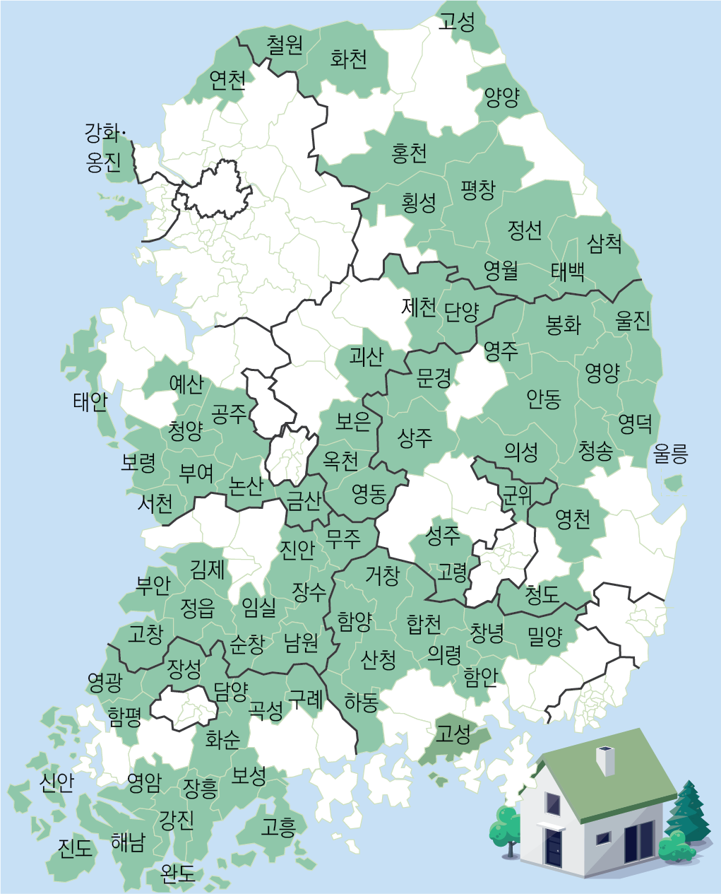 ③전남의 인구감소지역에 집을 갖고 있는 사람이 인근의 다른 인구감소지역에 집을 하나 더 산다면 1세대 1주택자로 특례 적용을 받습니다.
