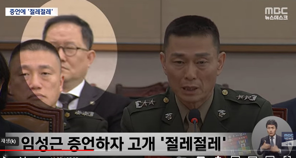 그리고, 임성근 전 사단장 발언 중에 고개를 절레절레 흔드는 장면이 포착되는 것에 대해서도 언급했다.