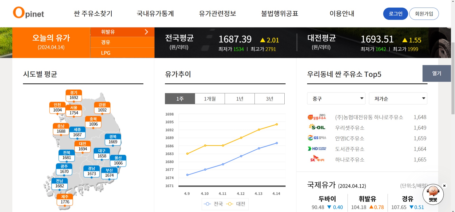 기름값이 자꾸 올라가고 있습니다. 한국석유공사가 집계한 2024년 4월 2주차 주유소 휘발유 판매가격은 전주 대비 26.3원 상승한 리터당 1673.3원입니다. 경유는 전주 대비 11.1원 올라 1551.3원을 기록했습니다. 유가는 올 초부터 꾸준히 상승세를 타고 있습니다. 최근 중동 상황이 심상치 않아 앞으로 어떻게 될지 모릅니다. 기름값이 신경 쓰이지 않을 수 없습니다. 가능하다면 기름값이 저렴한 주유소를 찾아야겠다는 마음이 듭니다. 최저가 주유소 검색하는 법을 알아보겠습니다.