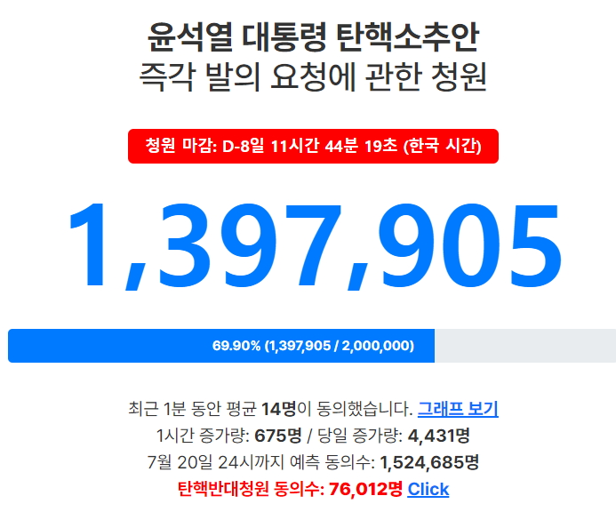 '탄핵소추' 국회동의청원 140만명 육박...12일 정오 현재