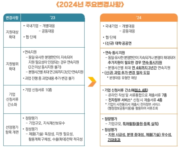 올해부터는 사업 신청서류도 10종에서 4종으로 대폭 간소화해 기업의 신청 부담을 덜고 더욱 신속하게 분쟁대응을 지원할 계획이다.