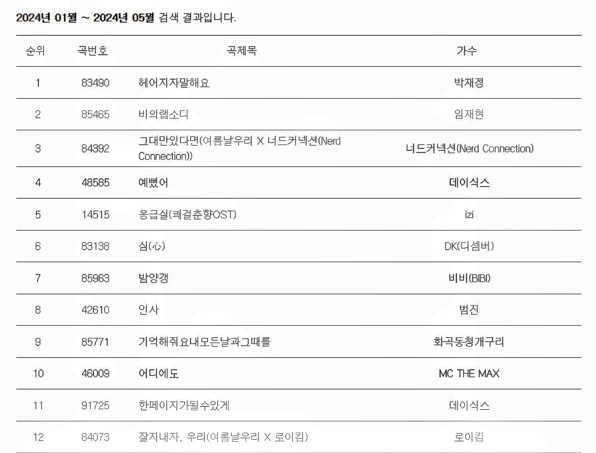 카테고리 없음 2024년 상반기 노래방 인기곡 순위 by gambaru 2024. 5. 8. 반응형 노래방 기기 제조 회사 TJ 미디어 인기 차트 반응형 공유하기 게시글 관리 아보카도7