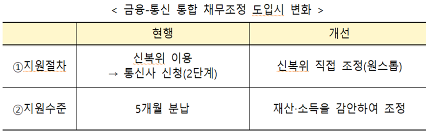 | 금융채무와 통신채무를 한번에 조정 | 2024년 2분기중 시행 예정 |