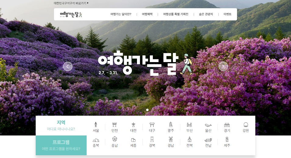 구체적인 여행 상품은 21일부터 접속 가능한 ‘여행상품 특별 기획전’ 사이트에서 확인할 수 있는데 ‘동해안 7번 국도 따라 1박 2일’ ‘제천 힐링 기차 여행’ ‘명사 초청 안동 1박 2일 인문학 여행’ ‘남도 미식 여행’ ‘봄의 전령 광양 매화, 구례 산수유 여행’ 등이 마련되어 있다고 합니다.